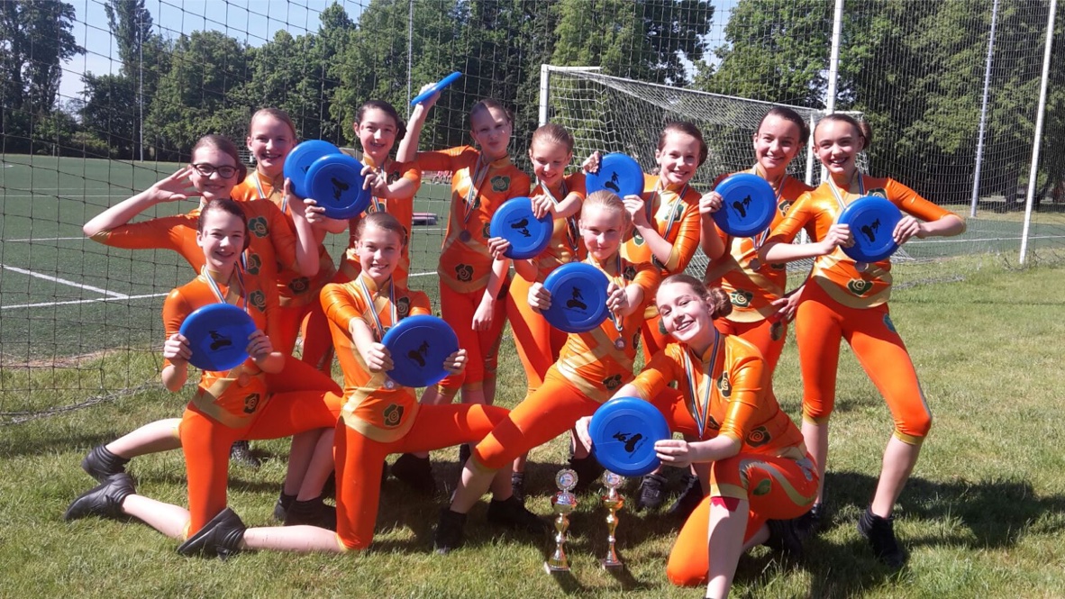 Brzké vstávání nám nevadilo a zatímco ostatní naše týmy teprve vstávaly, holky i v oslabení předvedly parádní sestavu. Pochvala od odborné poroty a nečekaná stříbrná medaile. Při sledování výsledkové tabule nám úsměv trochu ztuhl. Zlaté medaile nám utekly o jeden jediný bod.